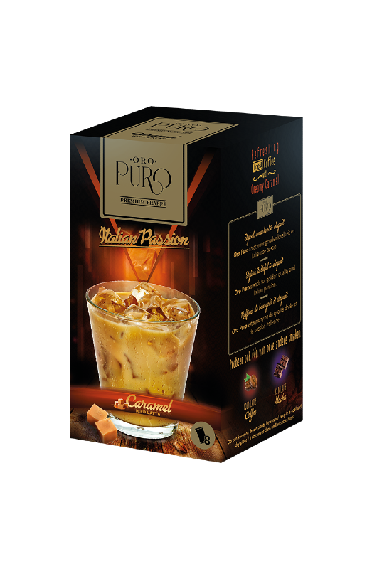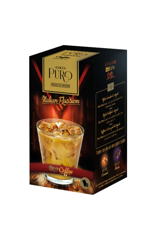 Oro Puro now also offers our customers the 5 star ice coffee experience at home! Especially developed for easy preparation at home with or without using a blender, but still maintaining the authentic Oro Puro presentation and taste. Italian quality ice coffee at home or at work. Of course, everything is delivered with the same Oro Puro values and presentation to stand out on every shelve. Great presentation and excellent authentic taste.